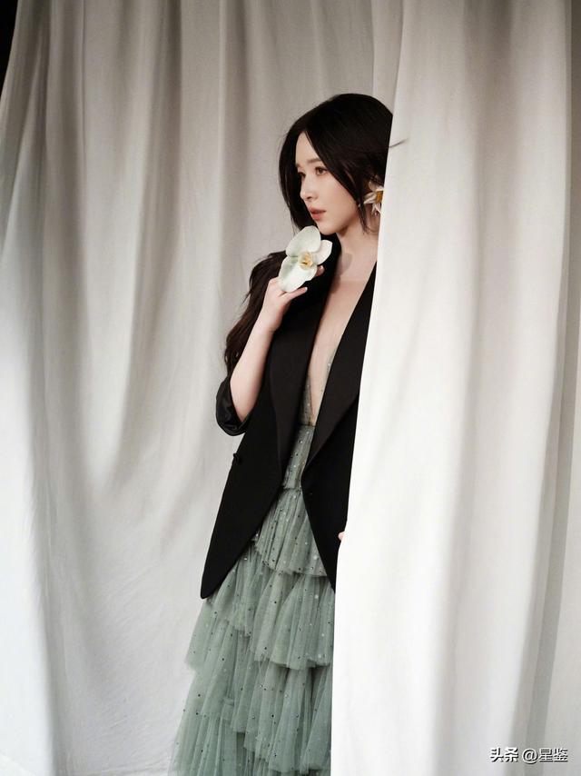 阚清子这组造型真的把温柔与酷感平衡到了极致!oversize黑西装自带随性气场,宽松版型藏住所有身材小瑕疵,翻领设计又能修饰肩线,内搭深V网纱打底,若隐若现的肌肤感添了几分慵懒欲感,刚柔并济的反差感直接拉满。